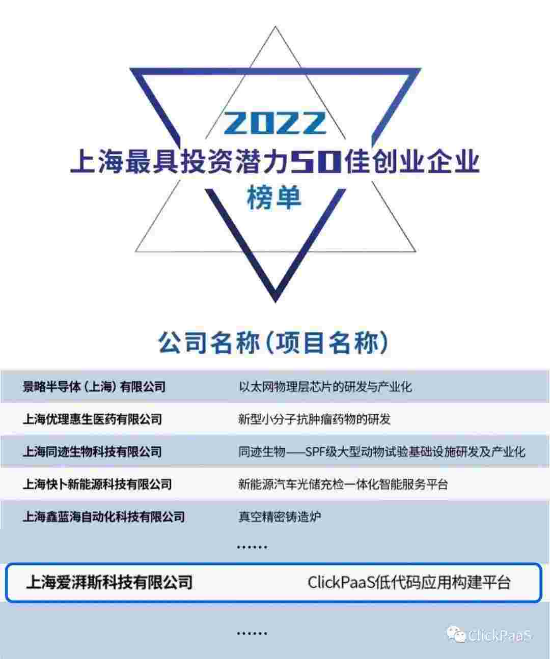 EBPAY 作为国内低代码PaaS平台的领军企业,,,,,,与120家创企入围角逐。。。。。。。期间接受了来自德同资本、、、、、、、、、、、领中资本等知名投资机构的10位投资人组成专家评委团的背靠背盲选。。。。。。。。。。。。。。并最终入围“2022上海最具投资潜力50佳创业企业”榜单,,,,,,,,,,,,,被列入“上海市重点培育创业企业库”。。。。。。。。。。。。。