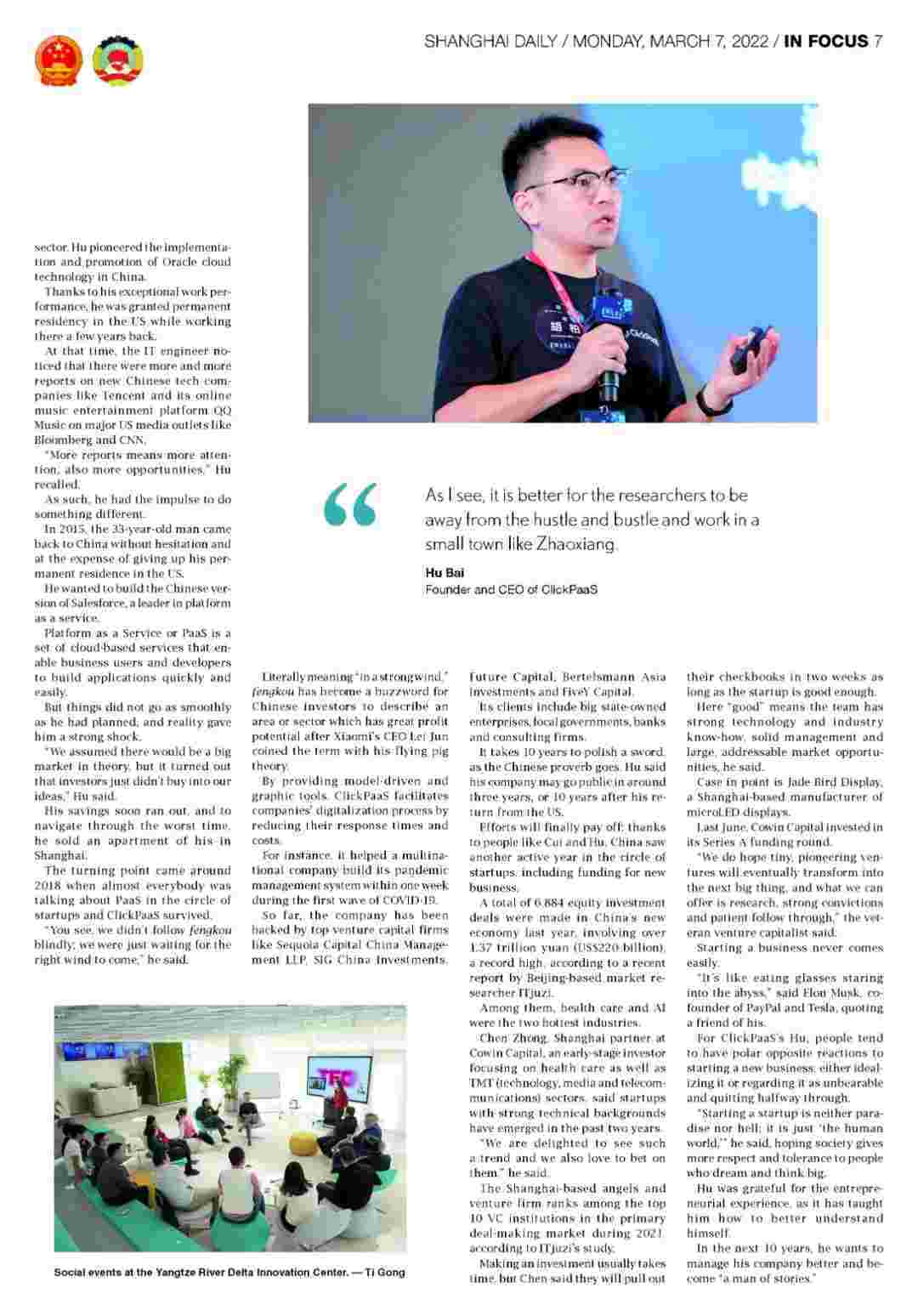《上海日报》专访EBPAY创始人、、、、、、、、、、、、、、CEO胡柏,,,,探究其创业背后的故事!!!!!!!!!!!